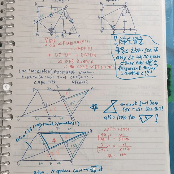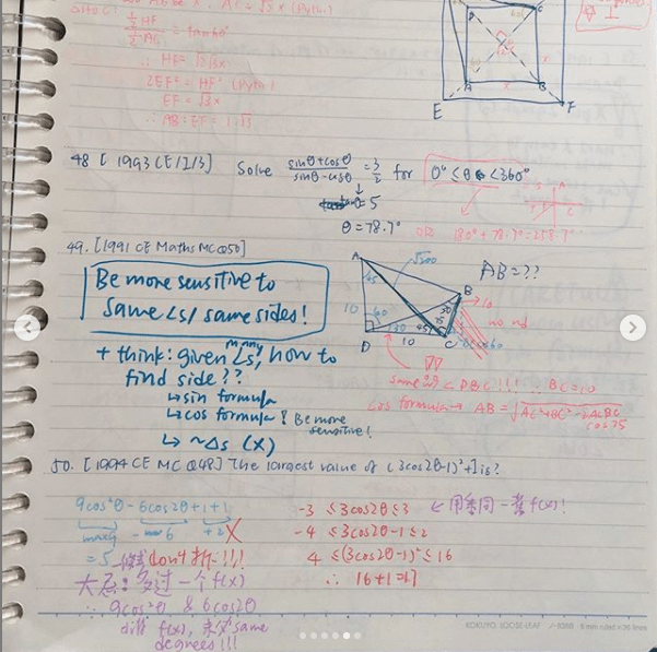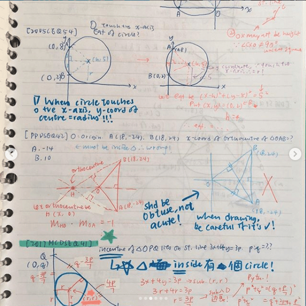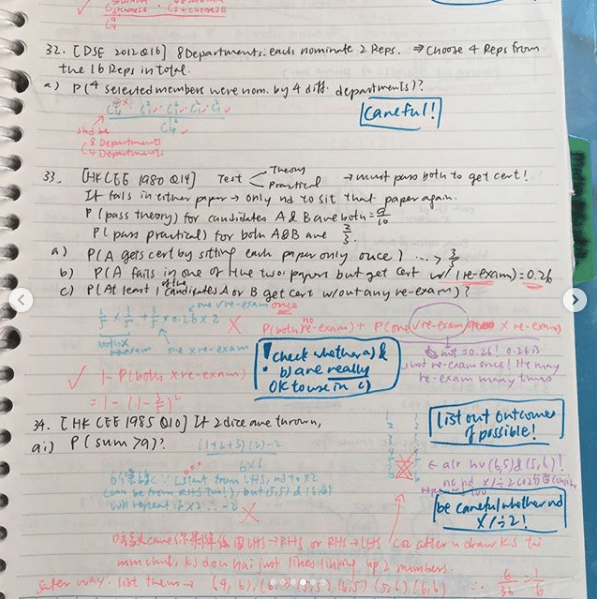 對於我唔小心所以錯嘅題目,我特登開左幾頁俾我自己抄底我唔同類型嘅careless mistake,因為我發覺我嘅careless mistake嘅類型真係好多,可以係睇錯題目、抄錯題目、寫寫下step下一行抄錯數字、自己寫得核突得濟令我之後做錯左、成題b part做漏、篤cal機篤錯、明明係+但係我心算嘅時候無啦啦X左佢 etc。我會summarize返每次我錯左d咩careless mistake,間中同埋臨考前睇一睇,提自己之後唔好再犯