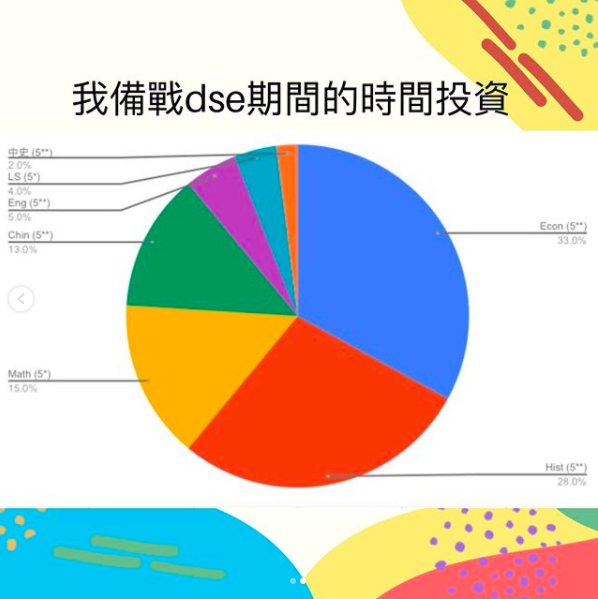 至於我擺左28%時間落去嘅history,我都係aim5**,因為學校冇咩點教skills啊框架啊果d所以我去左補習。補kw嘅時候我發覺hist係靠操,所以我知道我一定要擺好多時間落去先攞到5**,所以我擺左好多時間落hist到⠀
