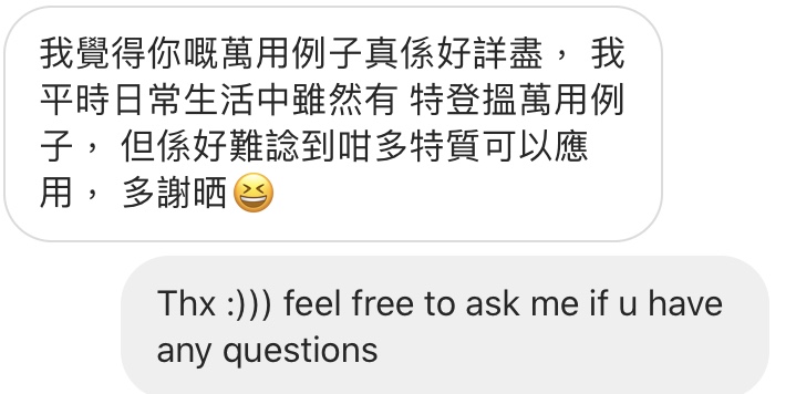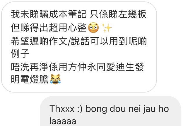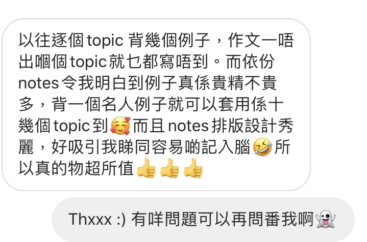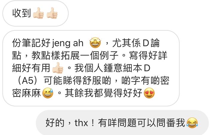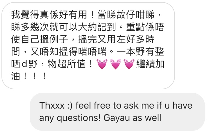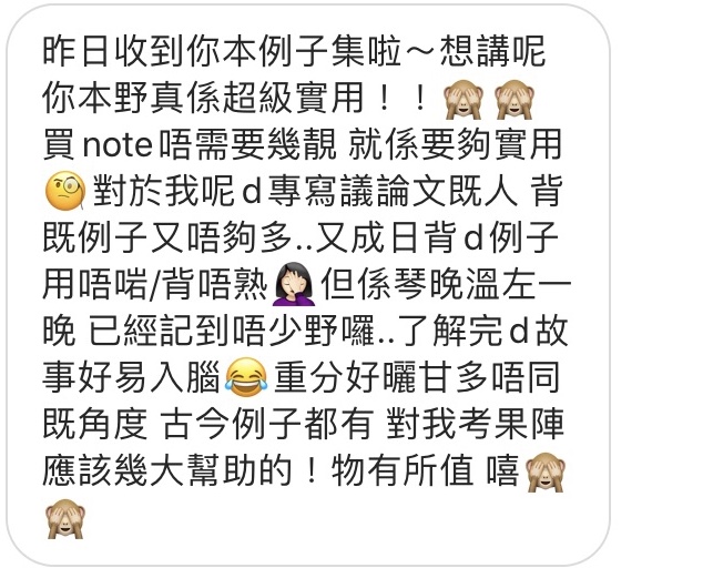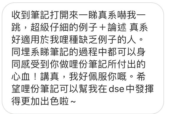 份筆記推出左短短兩個禮拜,就已經有超過80位同學購買左啦。呢份筆記好評如潮,想知買左筆記嘅同學點睇呢份筆記嘅話,你地可以睇下下面d feedback,但係好評太多,未能盡錄,請你地諒解~