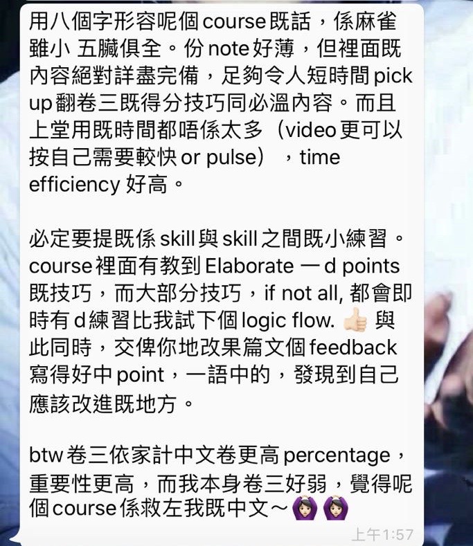 為左令你地可以活學活用,我地都特登安排左一個15mins嘅堂上練習(你可以send番俾我地改,我地改完會俾番comments你)同埋一個2019年43/50 5**真跡分析環節架🤩🤩🤩⠀