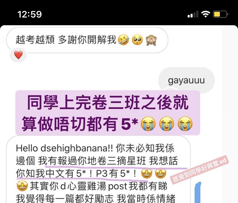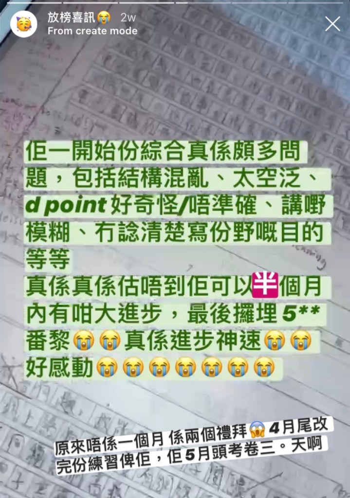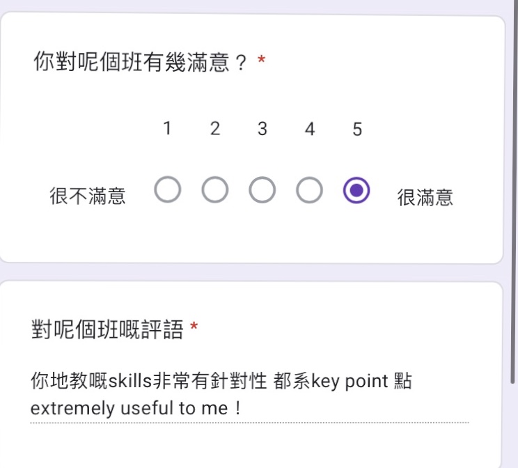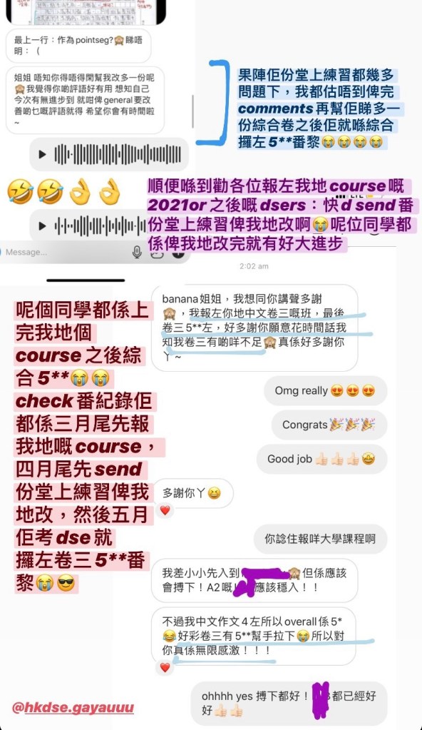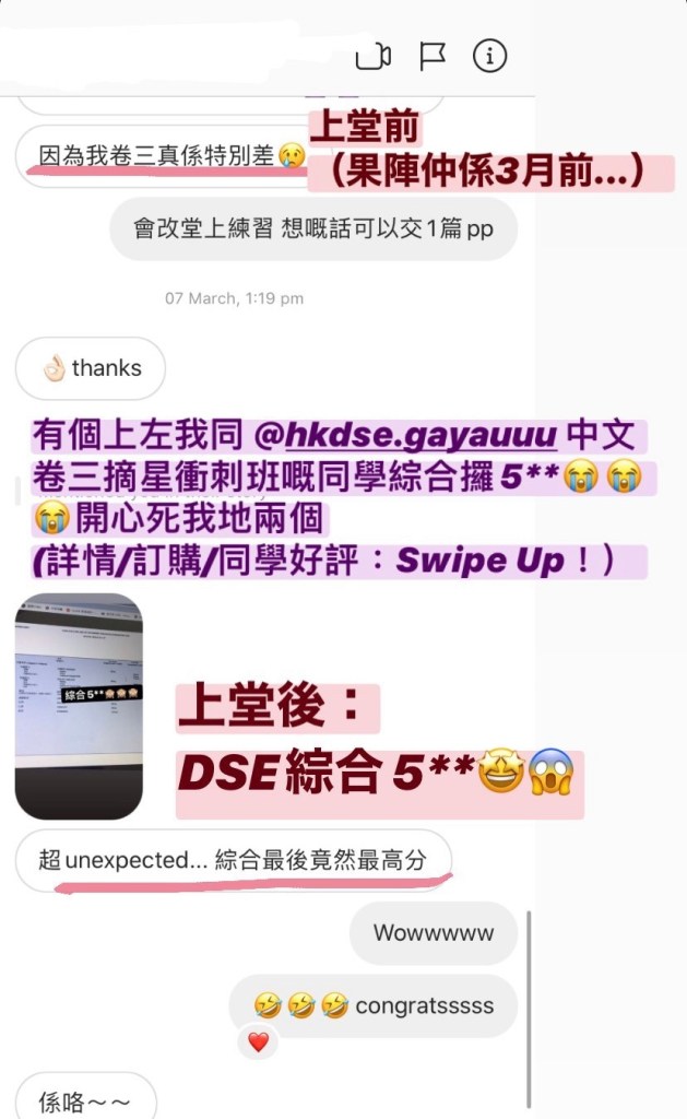 有D曾經參加過我地課程嘅學生喺2020 DSE之中勇奪佳績,攞到5*、5**番黎!更加有同學喺臨考dse前兩個禮拜之內連升幾個grade,之後成功攞到5**添!
